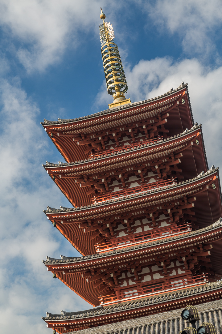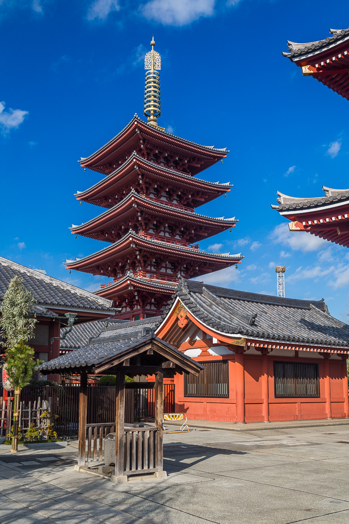 Neben dem Tempel liegt eine weitere fünfstöckige Pagode. Japanische Pagoden (tō) verstehen sich als Abbild der Grabstätte Buddhas. Fast alle japanischen Pagoden bestehen entweder aus drei (sanjū-tō) oder fünf (gojū-tō) Stockwerken. Sie haben einen quadratischen Grundriss und verjüngen sich mit zunehmender Höhe ein wenig.