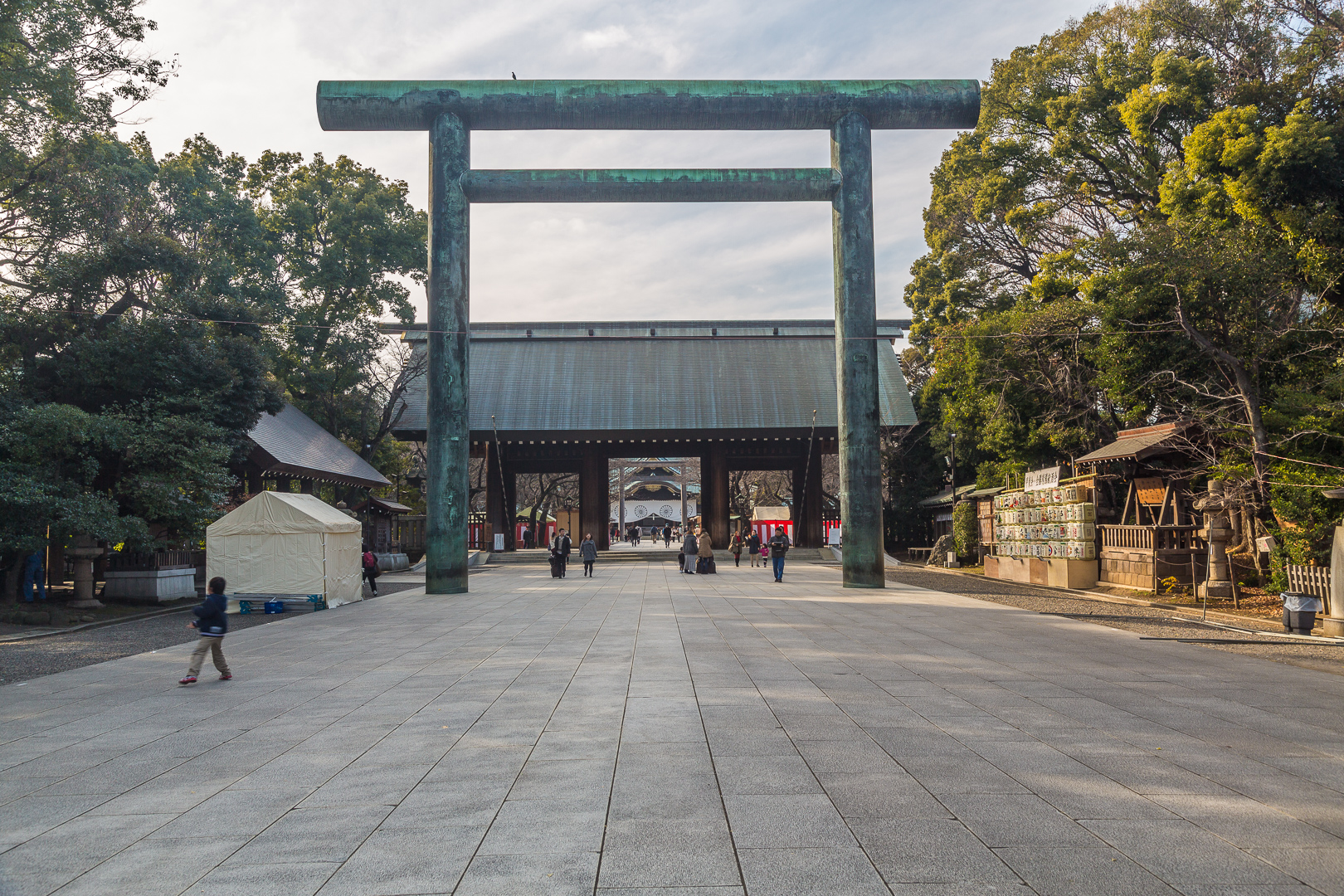 Weiter ging es dann zum Schrein für Kriegsopfer, dem „Yasukuni-junja“. Allerdings sind dort auch Kriegsverbrecher bestattet, weswegen dieser Schrein in Tokio recht umstritten ist. Ein einfacher Torbogen führt zu dem kleinen Tempel.