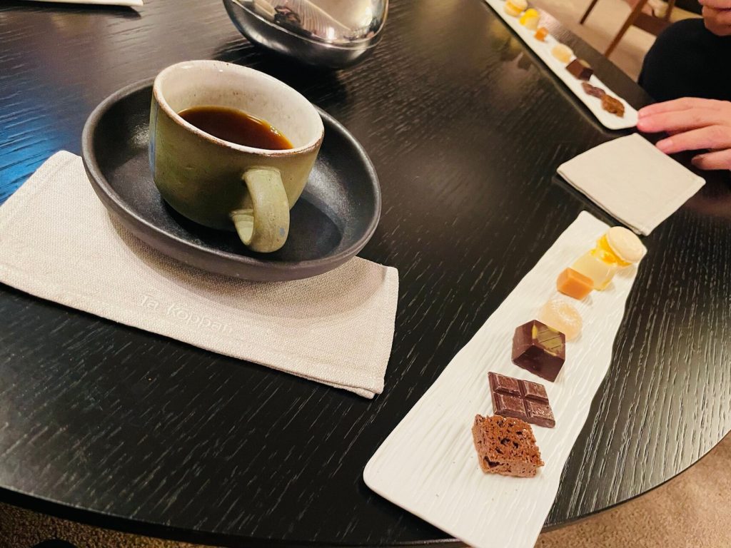 Zum Abschluss wurden wir wieder in den Lounge Bereich gebeten und bekamen dort noch einen Kaffee und selbst zubereitete sehr leckere Pralinées serviert. Man zeigte uns die umfangreiche Pralinée-Auswahl, wir nahmen einfach von jeder Sorte eine 😉.